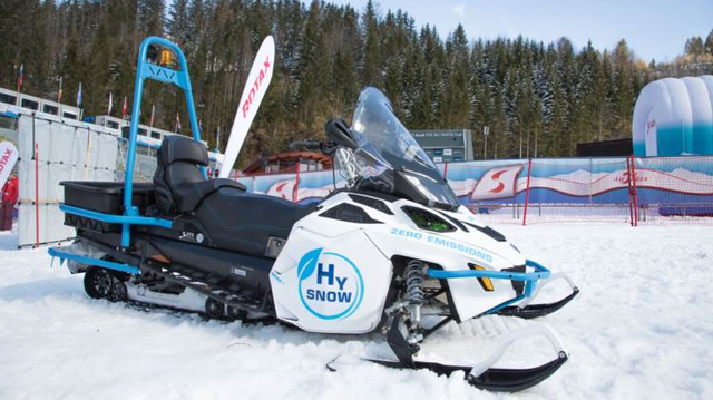 Tous ces véhicules sont des modèles électriques à batterie, les modèles à hydrogène sont réservés aux plus gros engins. Le projet HySnow montre ce qu'il est possible de faire avec une moto-neige alimentée à l'hydrogène et une station de recharge alimentée au solaire PV.